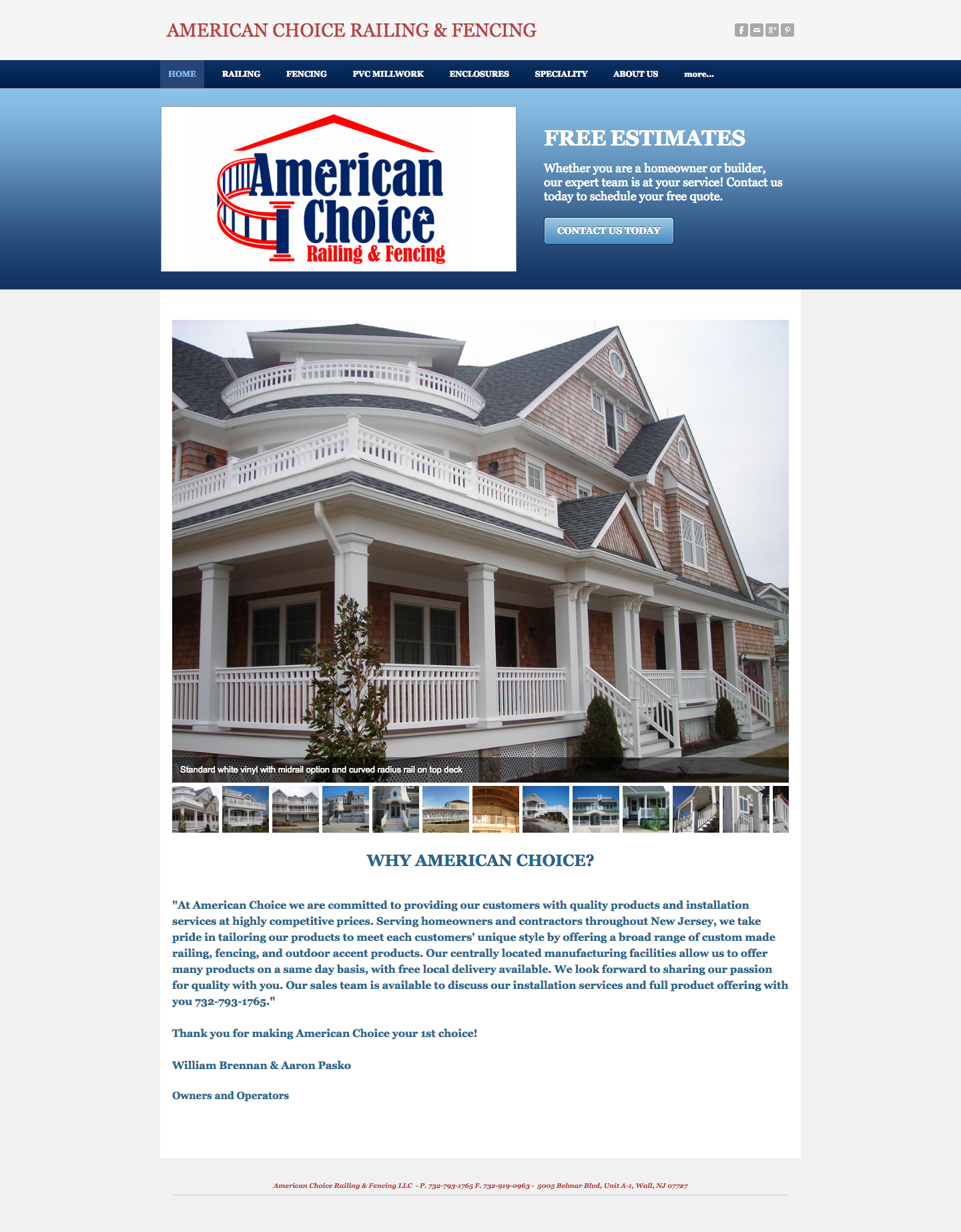 Red Bank, NJ – April 27, 2016 – Red Bamboo Marketing is proud to announce the launch of American Choice Railing & Fencing’s new ecommerce website, www.americanchoicerailings.com. American Choice Railing and Fencing has demonstrated an ongoing commitment to superior products and service for their clients since June of 2007 and the new website now speaks to that.